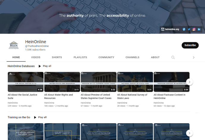 Find how-to videos for the various HeinOnline collections, general searching and navigating videos, as well as other useful tips and tricks for using HeinOnline.